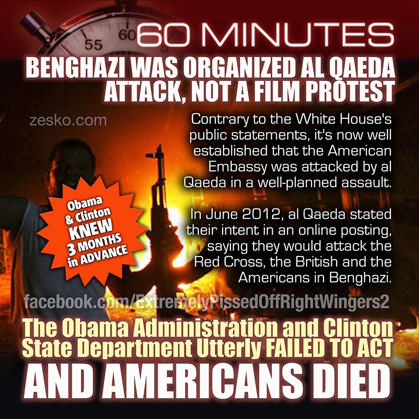 This is typical for the Obama Administration. Let's just FORGET that international intelligence agencies have already PROVEN that Al Qaeda organized the Benghazi Massacre MONTHS IN ADVANCE of the bogus story concocted by Hillary Clinton's State Department. Clinton and Obama are TRAITORS who are responsible for American deaths, conspiracy, violating the Constitution, and betraying our allies. Obama and Clinton deserve PUNISHMENT to the full extent of the law.